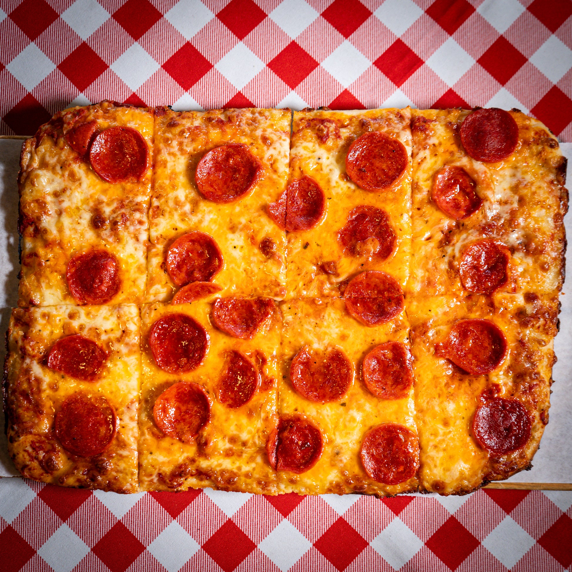 Made with fresh ingredients: mozzarella, tomato, pepperoni, and sausage